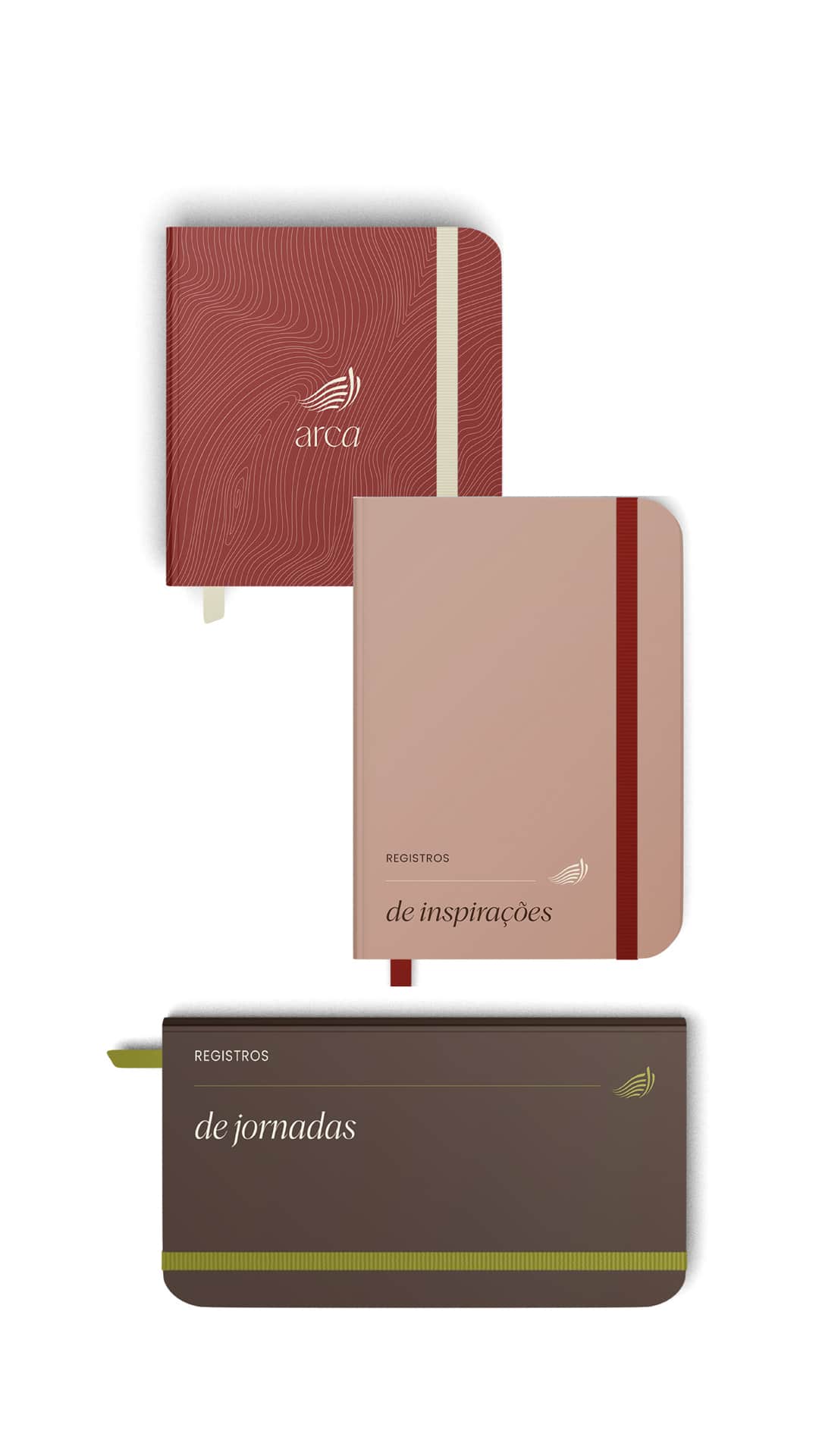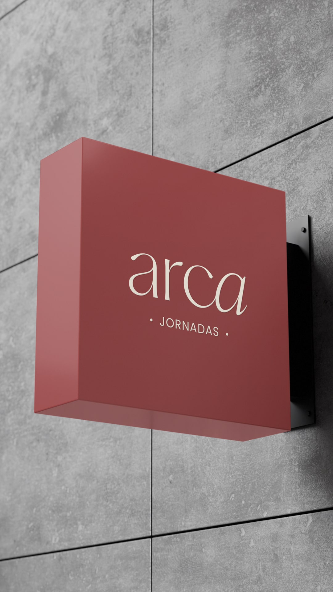 Imaginar uma arca não feita de madeiras e pregos, mas de vivências e sonhos, foi o ponto de partida para criar esta identidade visual. Como uma antiga embarcação que carrega tesouros preciosos, a Arca Jornadas transporta algo ainda mais valioso: a possibilidade de transformação pessoal através da descoberta. O símbolo desenvolvido emerge como uma arca estilizada que se move em direção ao observador, suas linhas fluidas evocando tanto as ondas do mar quanto os caminhos serpenteantes que levam aos destinos mais inesperados. É movimento puro – a jornada personificada em forma visual.