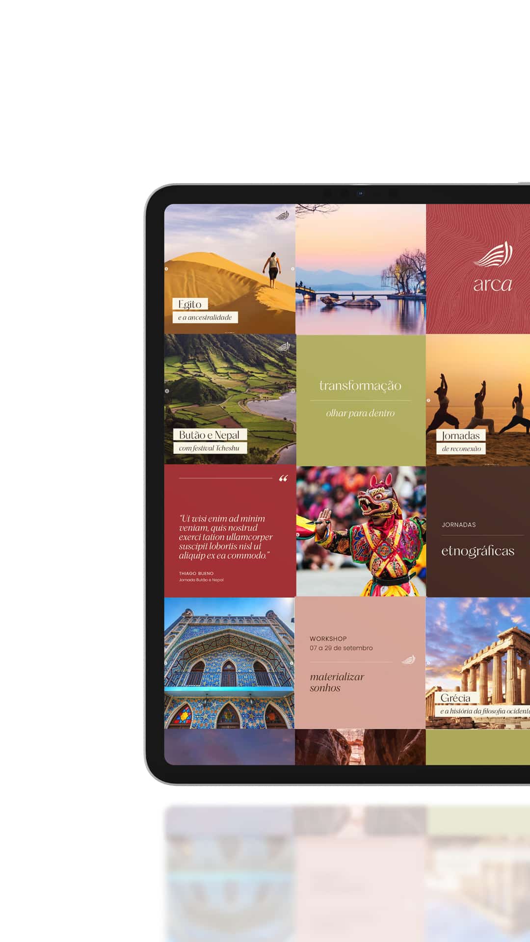Arca Jornadas é ponte, conectando viajantes intencionais a experiências que transcendem o comum. Com curadoria e know-how de Ju Secchi, a marca traduz expectativas e intenções em jornadas que transcendem fronteiras geográficas, culturais e pessoais. Encontros únicos com diferentes realidades e perspectivas. Seu diferencial está na abordagem e conexão com os valores e histórias que definem cada viagem. Aos que querem ir além do turismo tradicional, Arca proporciona o caminho para experiências únicas e significativas.